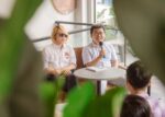 Hai diễn giả Tống Phước Bảo (trái) và Nam Kha chia sẻ tại buổi giao lưu sáng 16/4. Ảnh: Thanh Phong. |